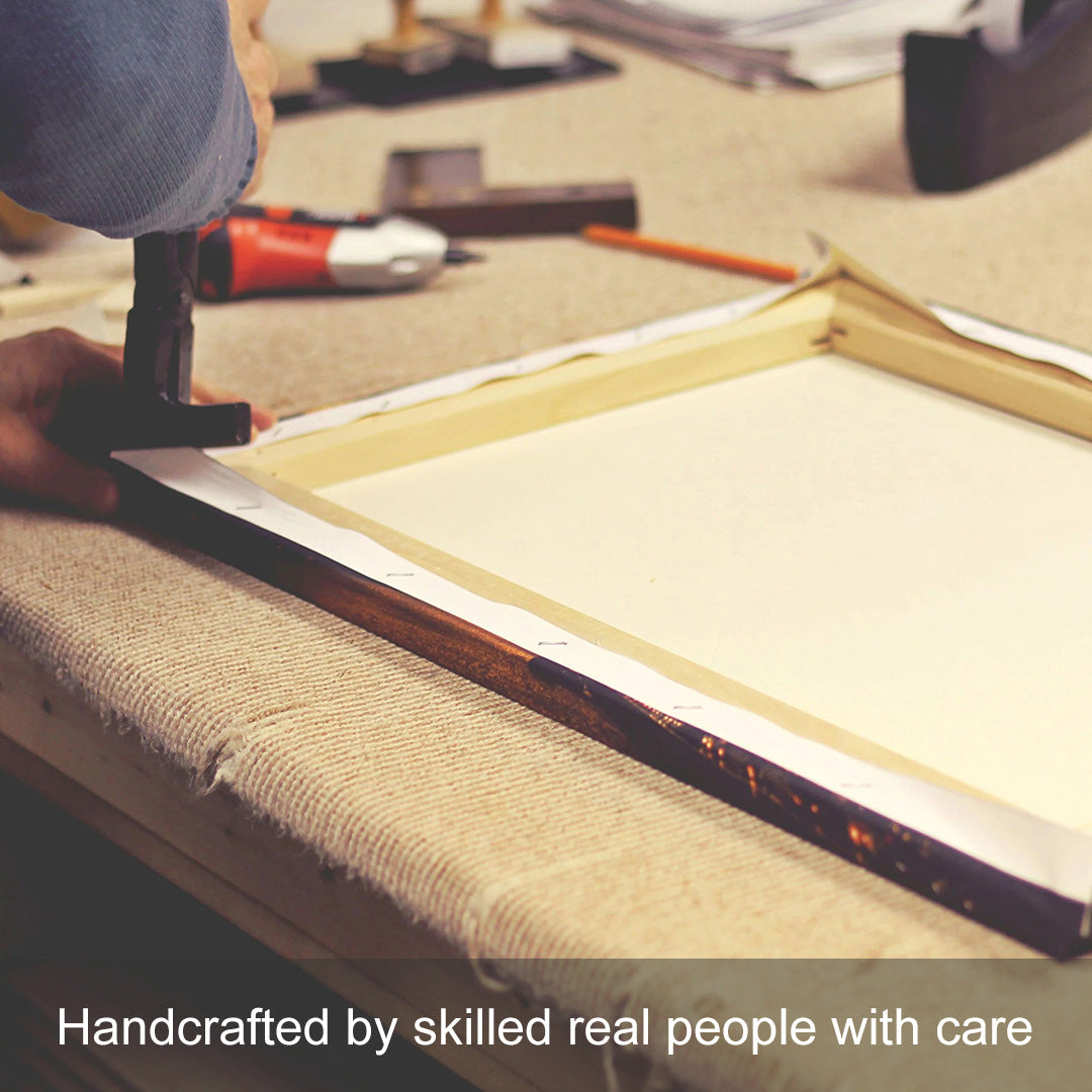 2-3cm (0.75-1.1") thick Premium wood frame with built-in hangers for easy display.
