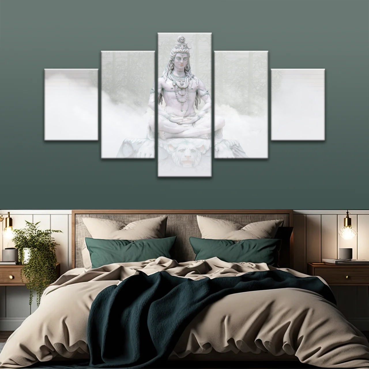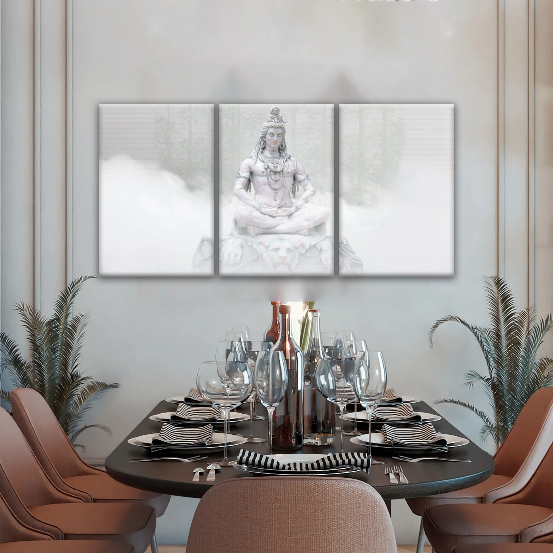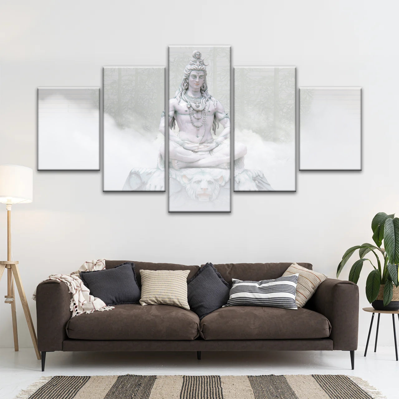 This artwork captures the serene and powerful form of Lord Shiva enveloped in mist, embodying the timeless essence of Hindu spirituality, inspiring inner peace and spiritual connection, experience the divine presence with our Hindu Deity Shiva in the Mist Statue Split Canvas Wall Art.