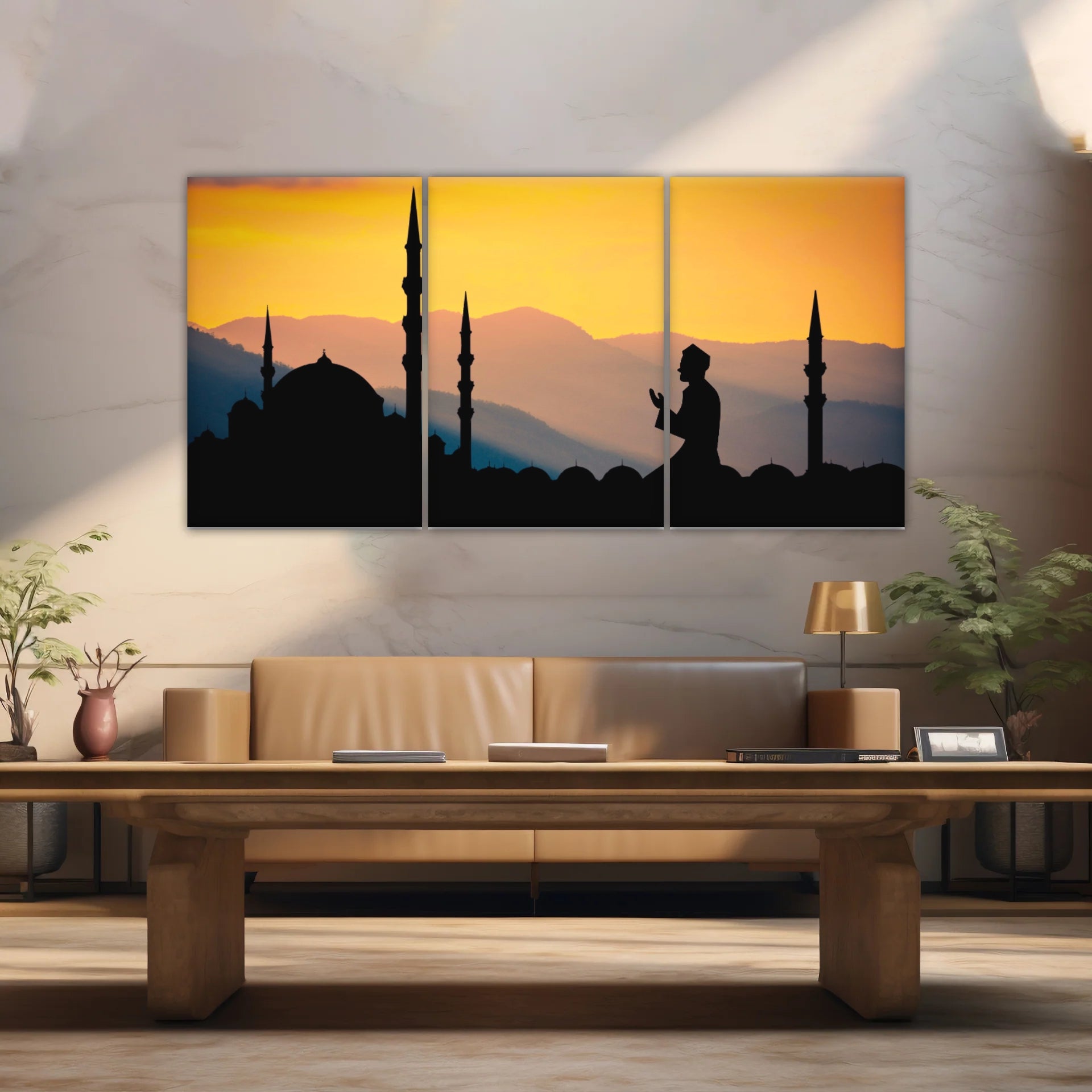 Silhouette of Man Praying In Mosque During Islamic Ramadan Islamic Decor