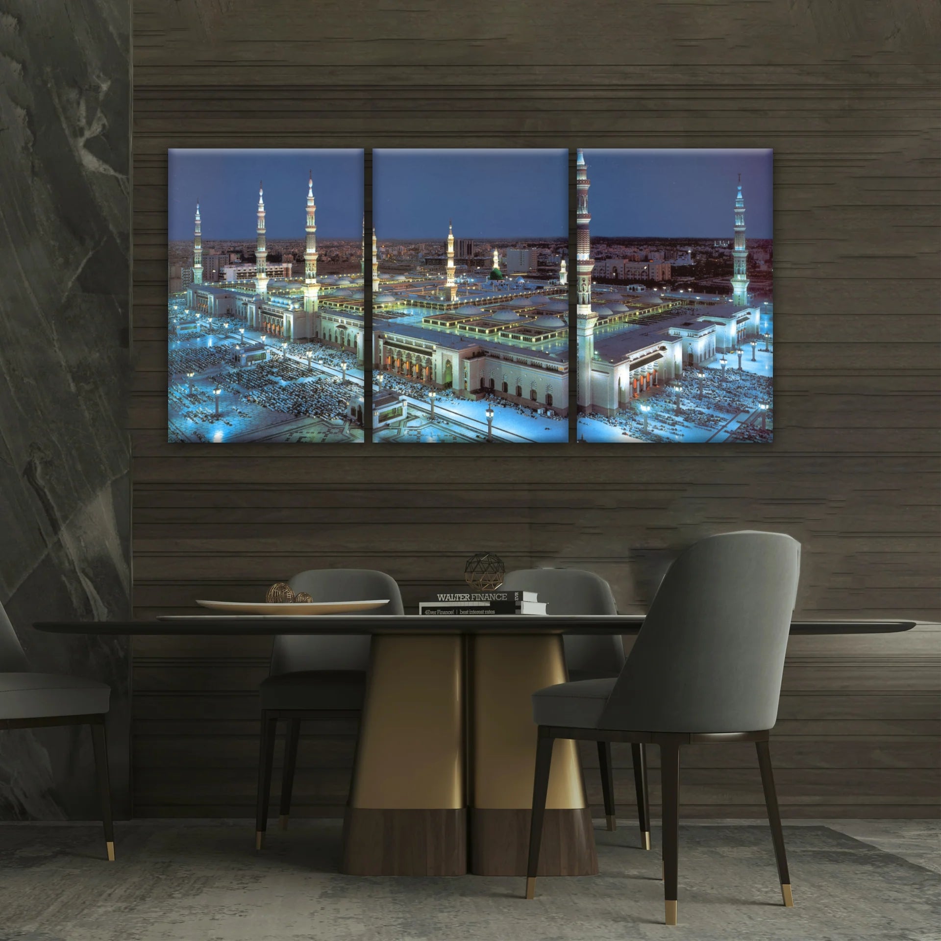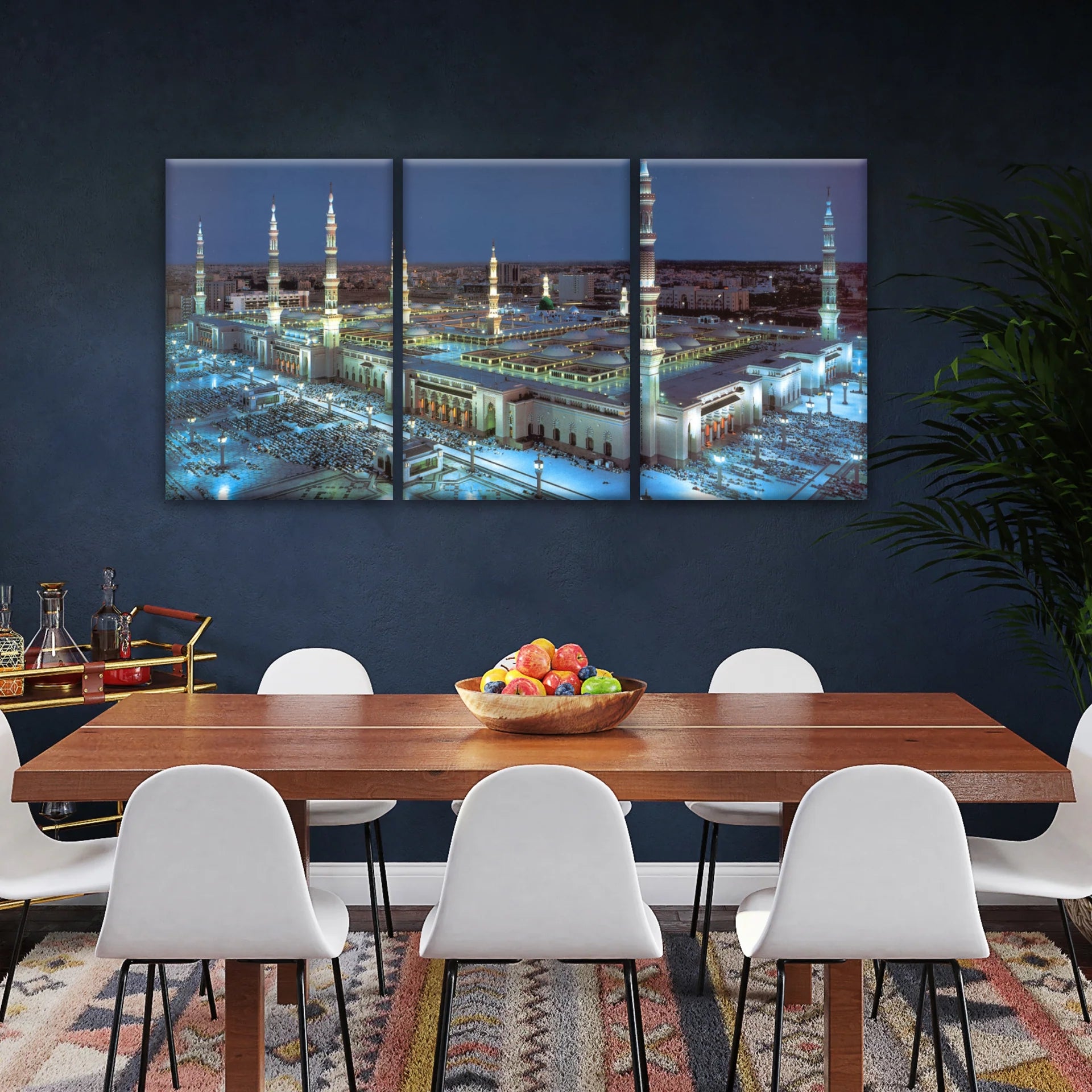Experience the majestic beauty of one of the world's most revered places of worship with our 'The Most Beautiful Mosques In The World - Masjid Al Nabawi In Medinah, Saudi Arabia' Islamic split canvas photo prints, it captures the grandeur and spiritual serenity of Masjid Al Nabawi, serves as a powerful reminder of the profound beauty and significance of Islamic architecture.